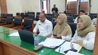 Foto : Sekretaris Dinas PKPLH Ninik. MS (tengah) diapit dua Kepala Bidang di Aula Gedung DPRD Trenggalek