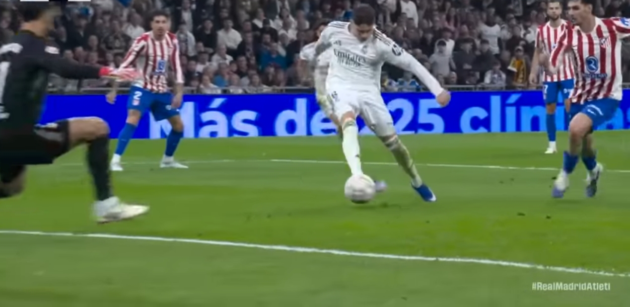 Foto; Aksi pemain Real Madrd, Federico Valverde saat mencetak gol ke gawang Atletico Madrid/Tangkapan layar @beiNSPORTSID