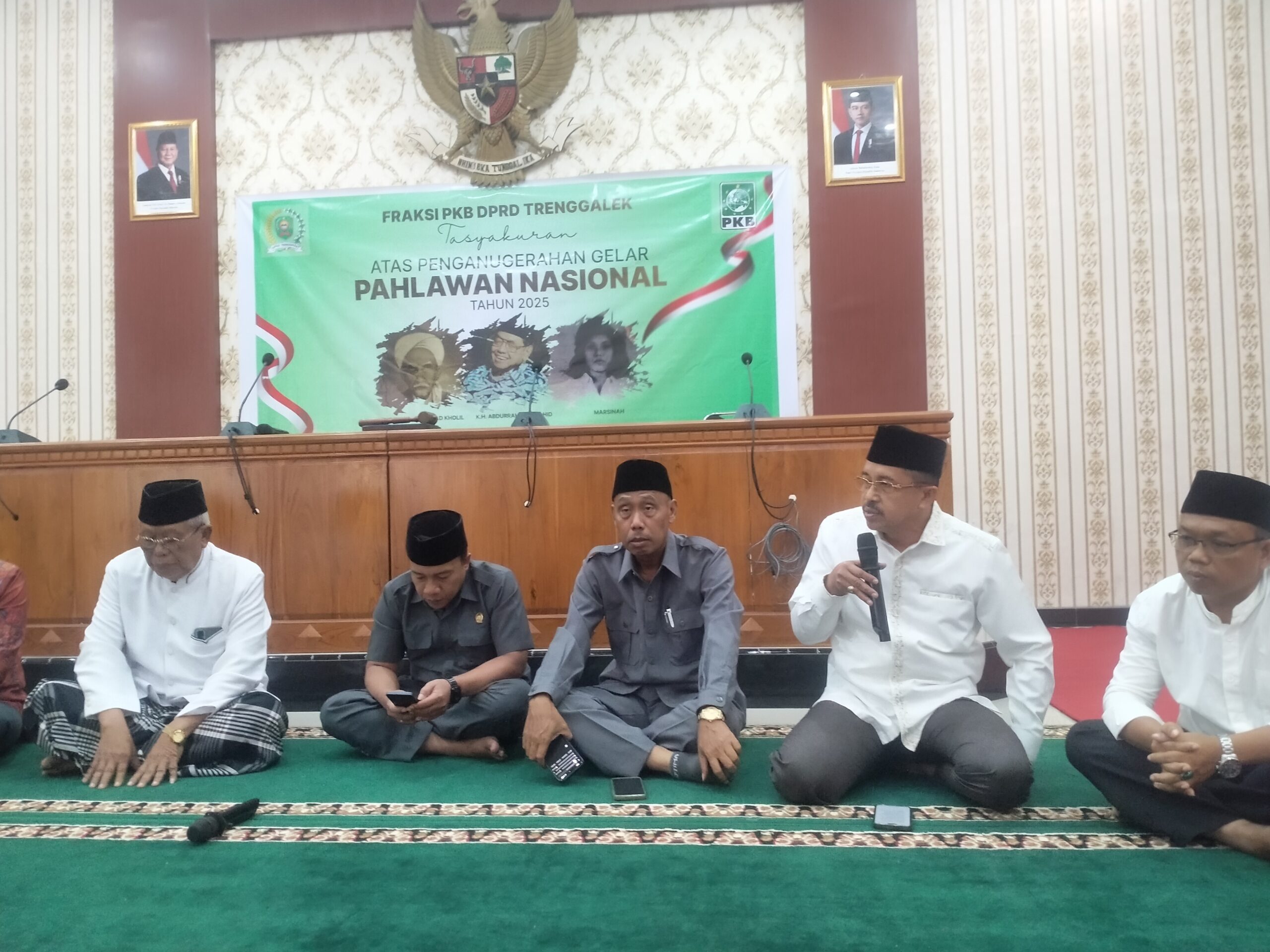 Fraksi PKB Kabupaten Trenggalek menggelar tasyakuran atas penganugerahan Pahlawan Nasional kepada Syaikhona Muhammad Kholil, Abdurachaman Wahid dan Marsinah di Aula Gedung DPRD Trenggalek, Jumat (14/11/2025).