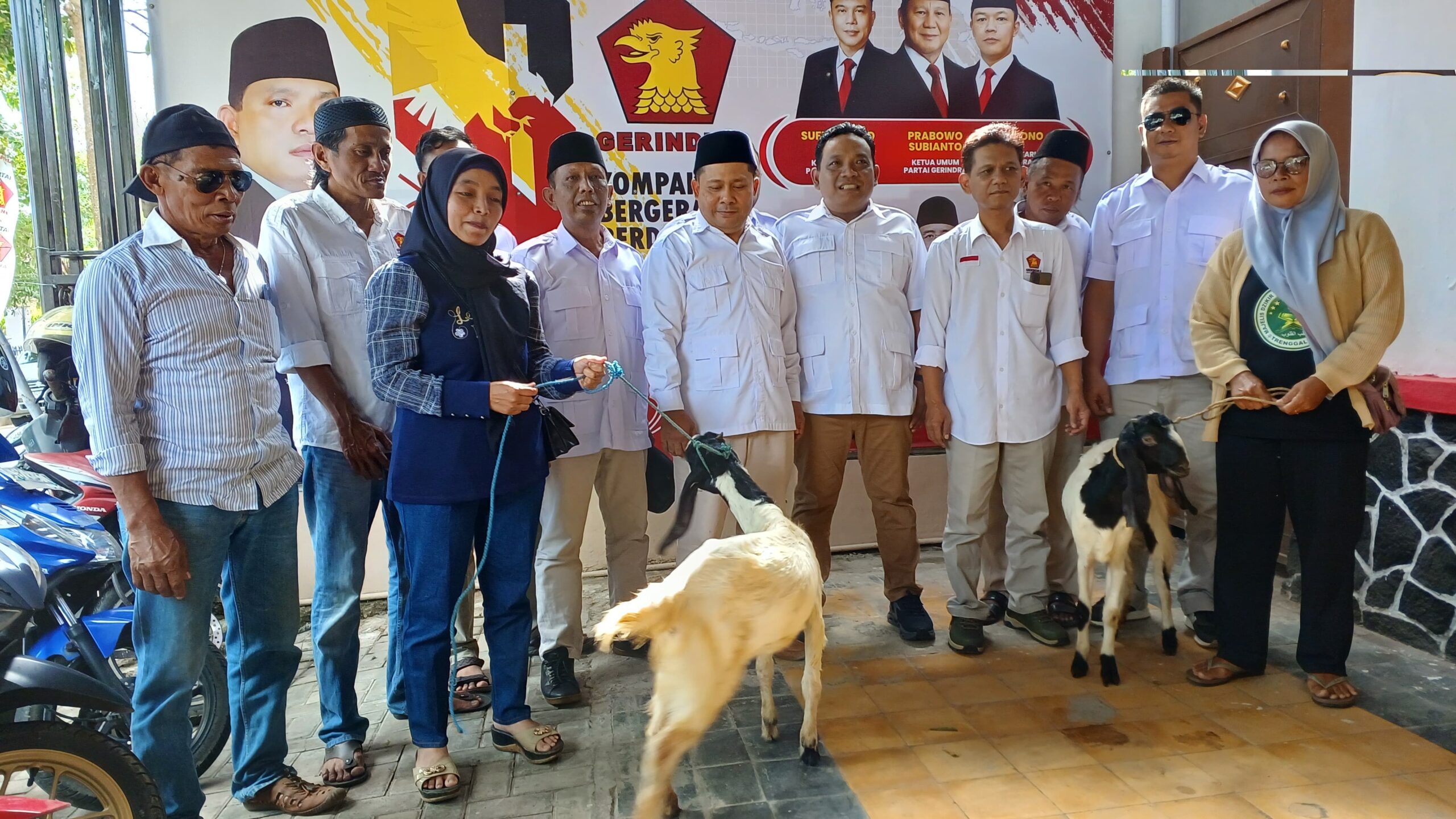 Foto: Jajaran pengurus DPC Partai Gerindra Kabupaten Trenggalek sesaat hendak menyerhakan hadiah kambing kepada pemenang kuis berhadiah