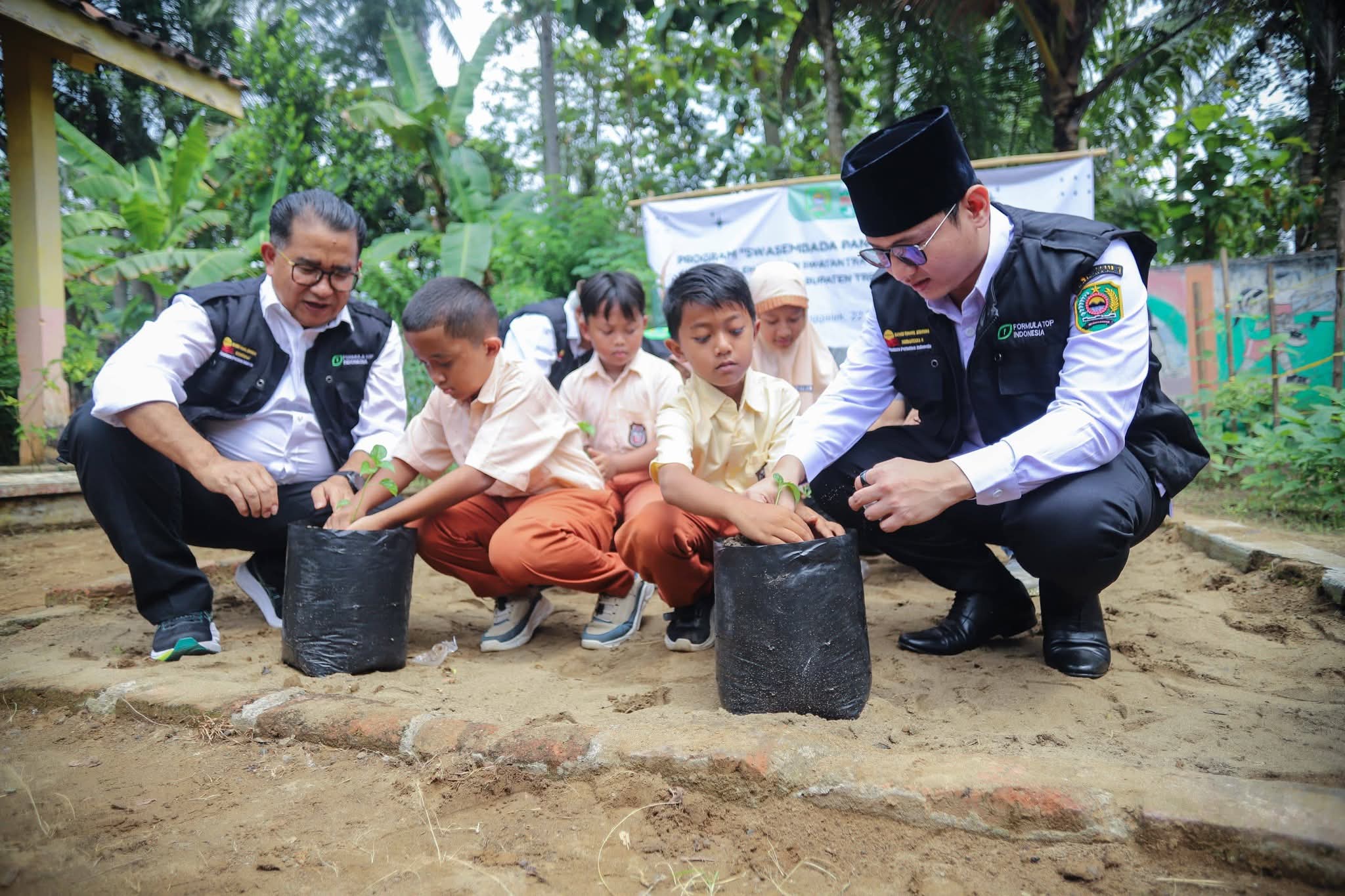 “Gerakan swasembada sangat penting jadi sejak kecil diajari bagaimana punya tanggung jawab, bagaimana mereka menanam dan merawat dan nanti bisa mengkonsumsi sesuatu yang mereka tanam.” Kata Bupati Arifin saat mendampingi Yayasan Swatantra Pangan Nusantara membagikan bibit dan pupuk di beberapa sekolah di Kecamatan Gandusari pada Rabu (22/04/2026).