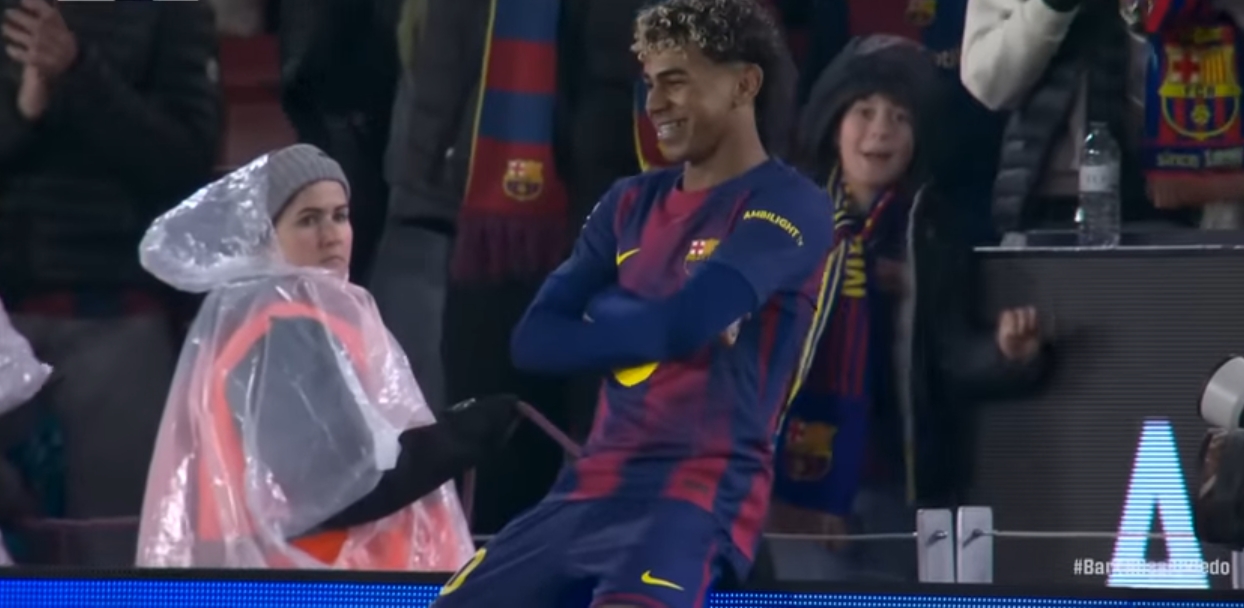 Foto:Lamine Yamal usai mencetak gol ke gawang Real Oviedo/tangkapan layar@beiNSPORTSID