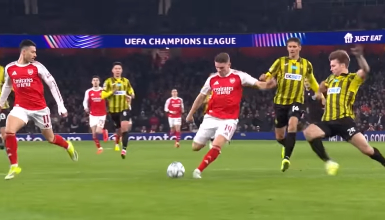 Sejak kick off babak pertama dimulai Arsenal langsung menggebrak pertahanan lawan, hasilnya umpan terobosan dari tengah lapangan dimanfaatkan dengan baik oleh Viktor Gyokeres dan sukses mengkonversi gol pertama bagi Arsenal.