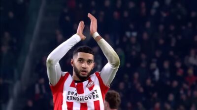 Sementara kartu merah diberikan oleh wasit pada pemain PSV Eidhoven Mauro Junior di menit ke-90+4.